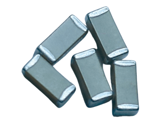 多層片式陶瓷電容器(MLCC: Multilayer Chip Ceramic Capacitor) 簡稱片式電容器。是由多層已印刷好金屬電極的陶瓷膜片,疊壓、共燒形成整體獨石結構后再通過浸涂方式在兩個端頭涂上一層金屬、燒結、電鍍而形成的一種電容器,它的外形象一個小石塊,所以也稱獨石電容器。它是重要的無源電子元器件(被動元件)之一。